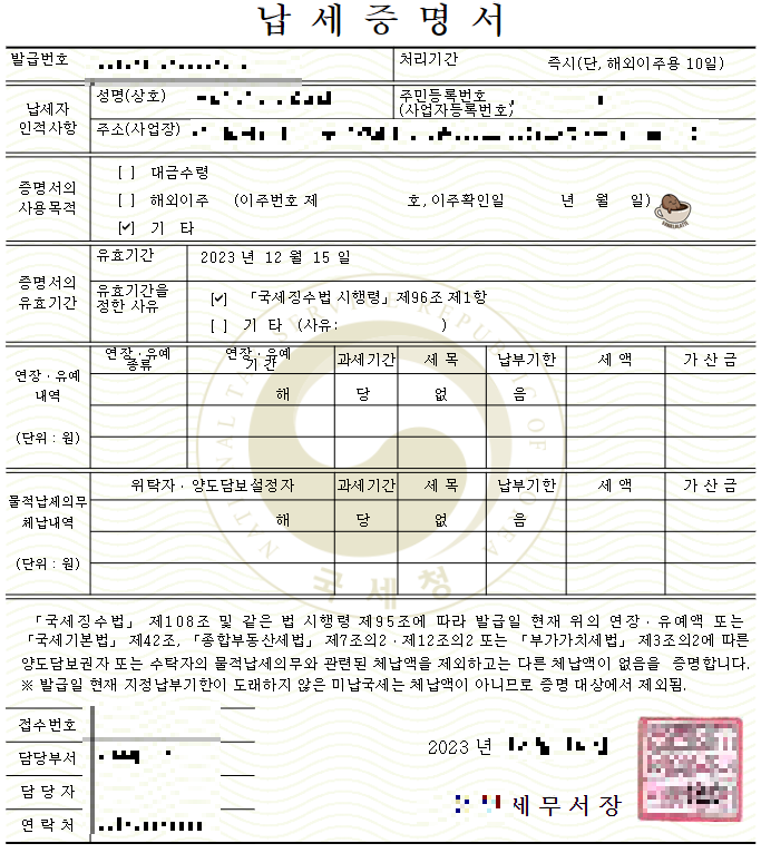 국세완납증명서는 다음과 같은 다양한 상황에서 필요합니다:
