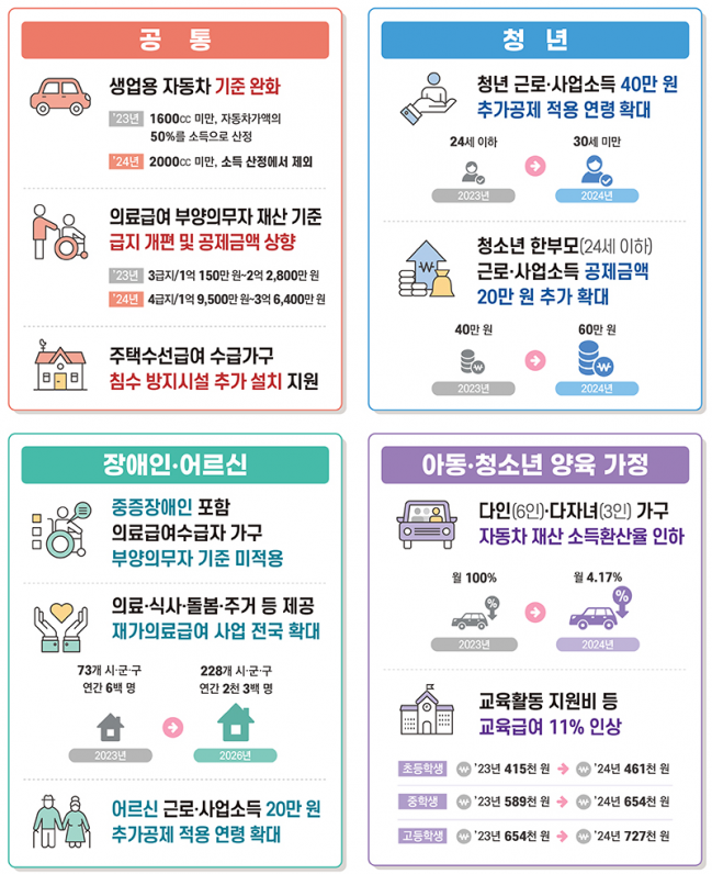 - 차상위계층 지원: 기준 중위소득 50% 이하