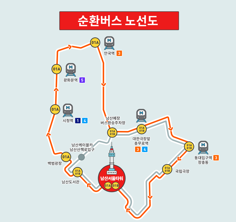 2025년 최신 남산서울타워 버스 이용방법을 상세히 알아보세요. 01A, 01B 순환버스 노선, 시간표, 지하철 환승 방법까지 한눈에 정리된 완벽 가이드!