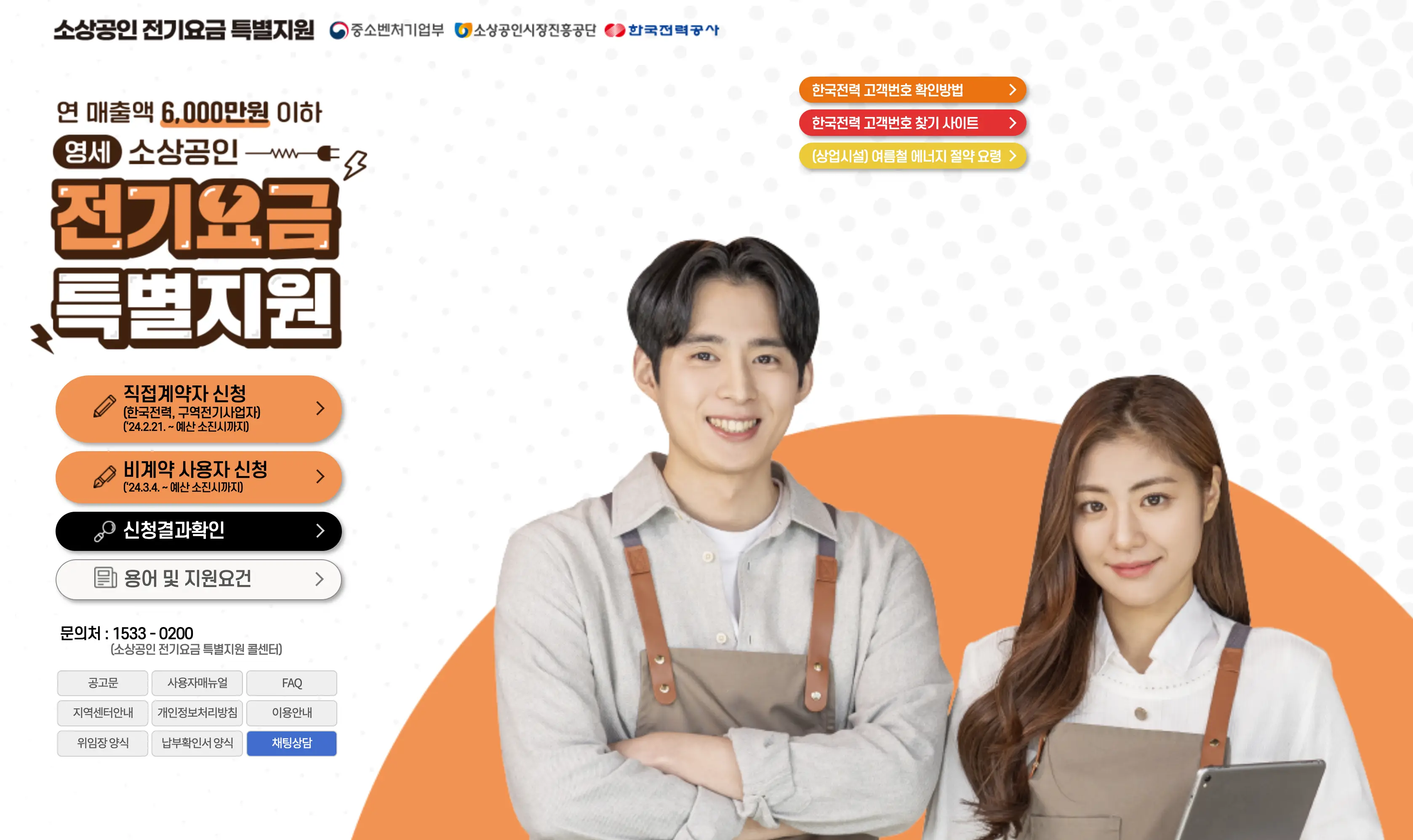 - 소상공인 전기요금 특별지원 홈페이지 (www.소상공인전기요금지원.kr) 접속