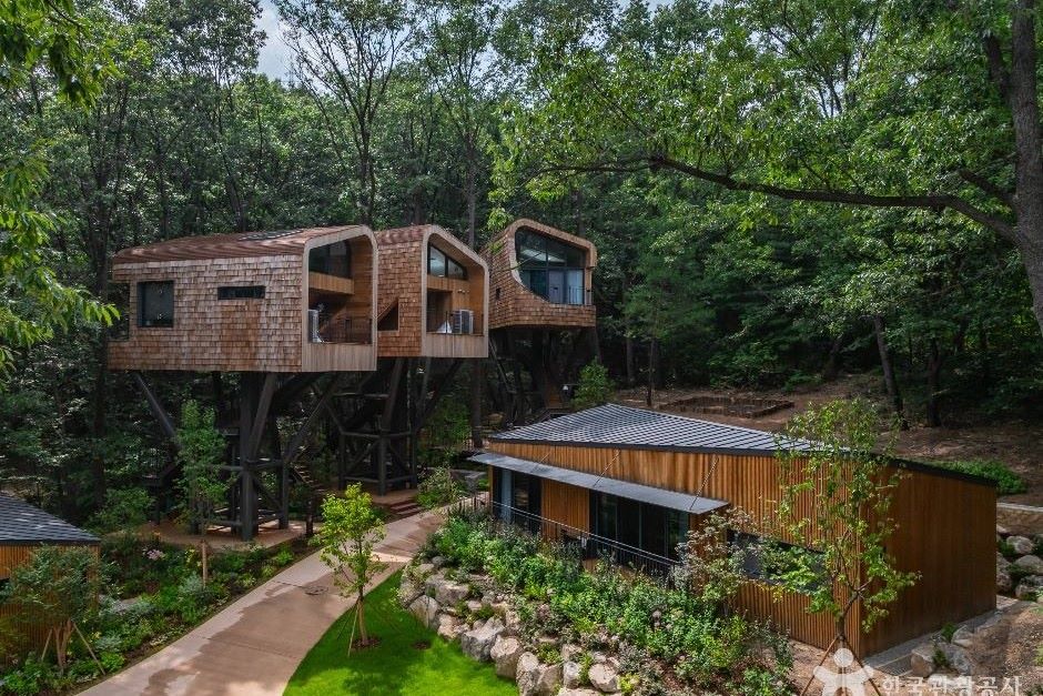 - 트리하우스 객실: 지상 14m 높이에 위치한 특별한 객실로, 3동이 운영됩니다. 숲속 전망이 일품이며 가장 인기 있는 객실 유형입니다.