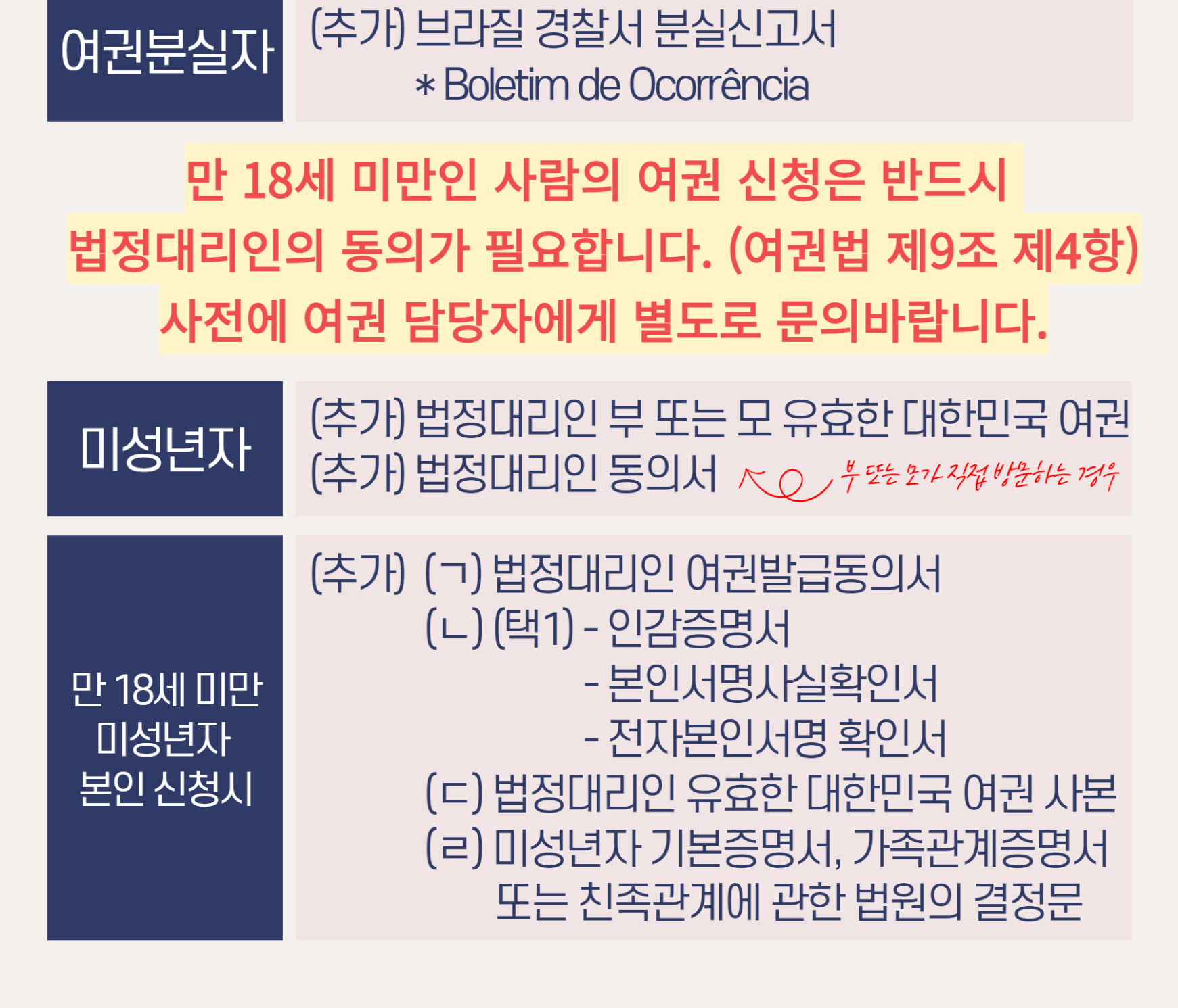 - 미성년자 여권: 법정대리인의 동의가 필요합니다.