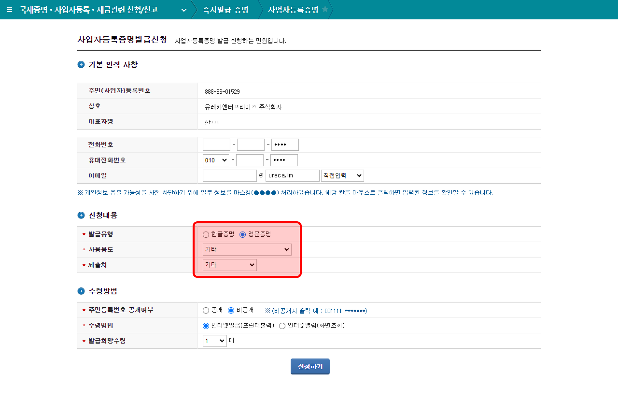 - 발급 후 즉시 내용 확인 및 오류 시 재발급 신청