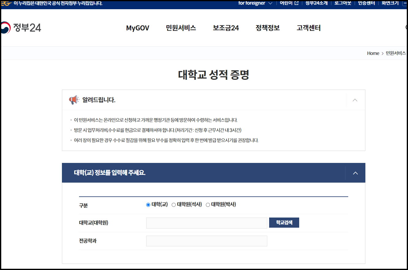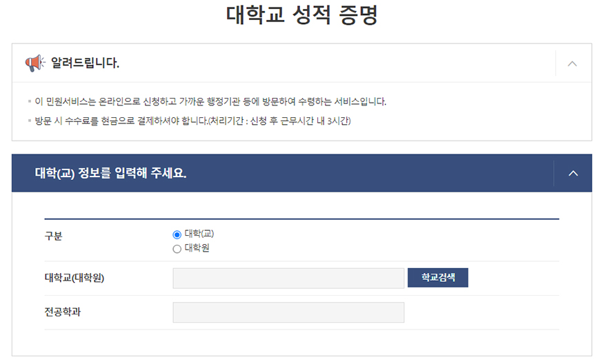 - 일부 대학은 자체 발급 시스템을 운영하니 확인이 필요합니다.
