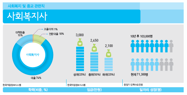 - 공공기관: 사회복지 전담 공무원, 국민건강보험공단, 국민연금공단 등