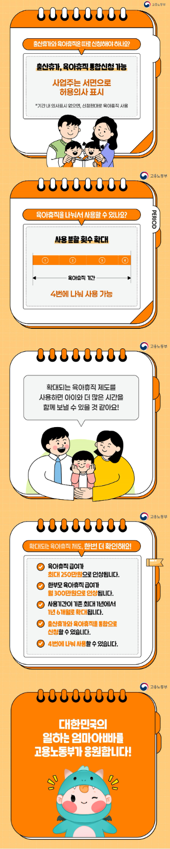 육아휴직 제도의 개선은 저출산 문제 해결과 일·가정 양립 지원이라는 두 가지 큰 목표를 달성하는데 중요한 역할을 할 것으로 기대됩니다. 새로운 육아휴직 제도를 적극 활용하여, 일과 육아의 조화로운 균형을 이루시기 바랍니다.